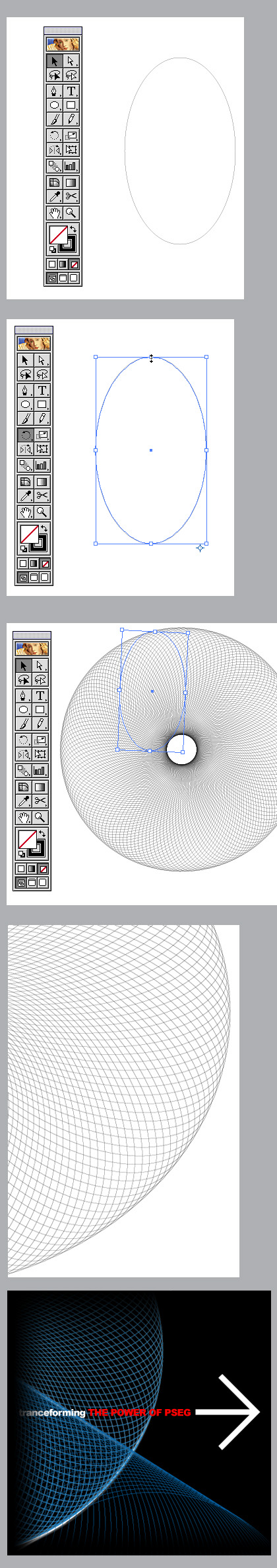 두번째 에서 선을 잡고 조금 움직인다음 커맨드+D 계속 누르면 3번과 같은 이미지가 만들어 집니다.